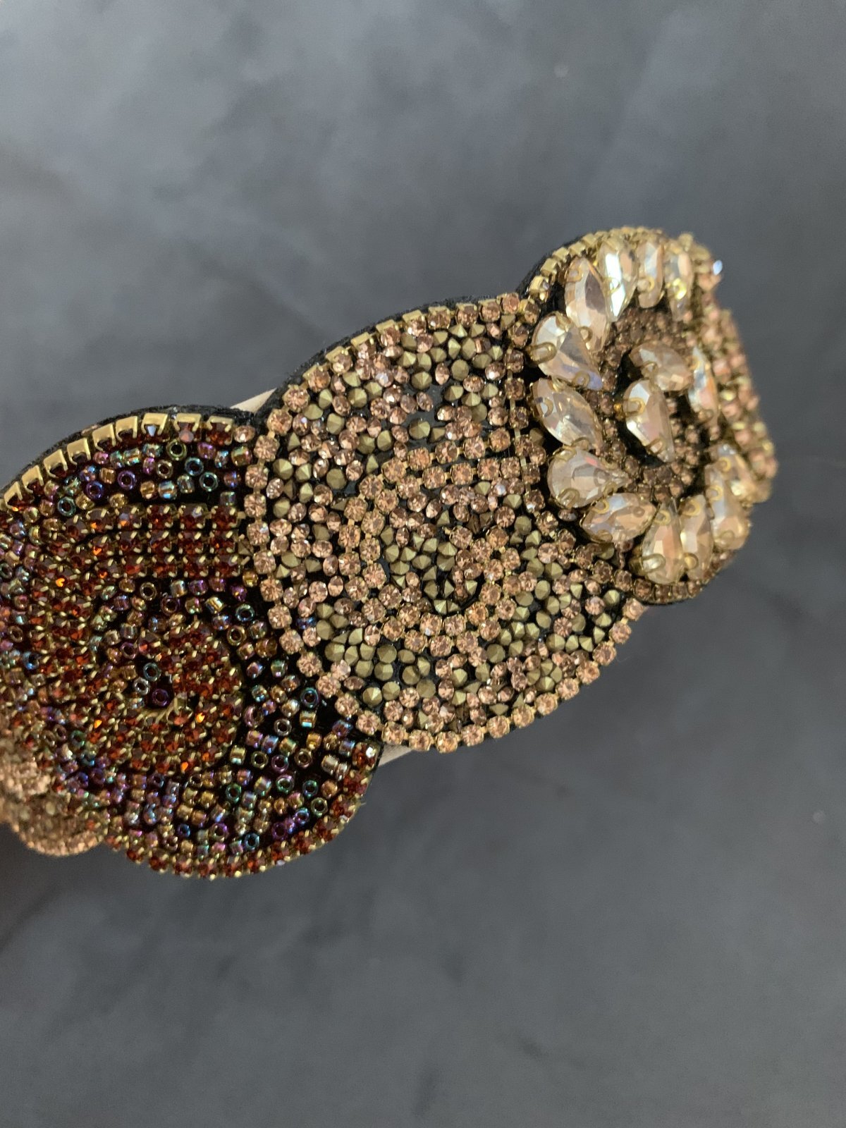 アワーレムやオリエンタル衣装に使用できるカチューシャタイプのヘッドドレスです。キラキラしたラインストーンやビーズが散りばめられたデザインですのでオリエンタル衣装にプラスしても良し!! ■キラキラカチューシャ■サイズフリーサイズ■カラー:ゴールド系■その他・ラインストーンやビーズは接着になりますので取り扱いにはご注意くださいませ