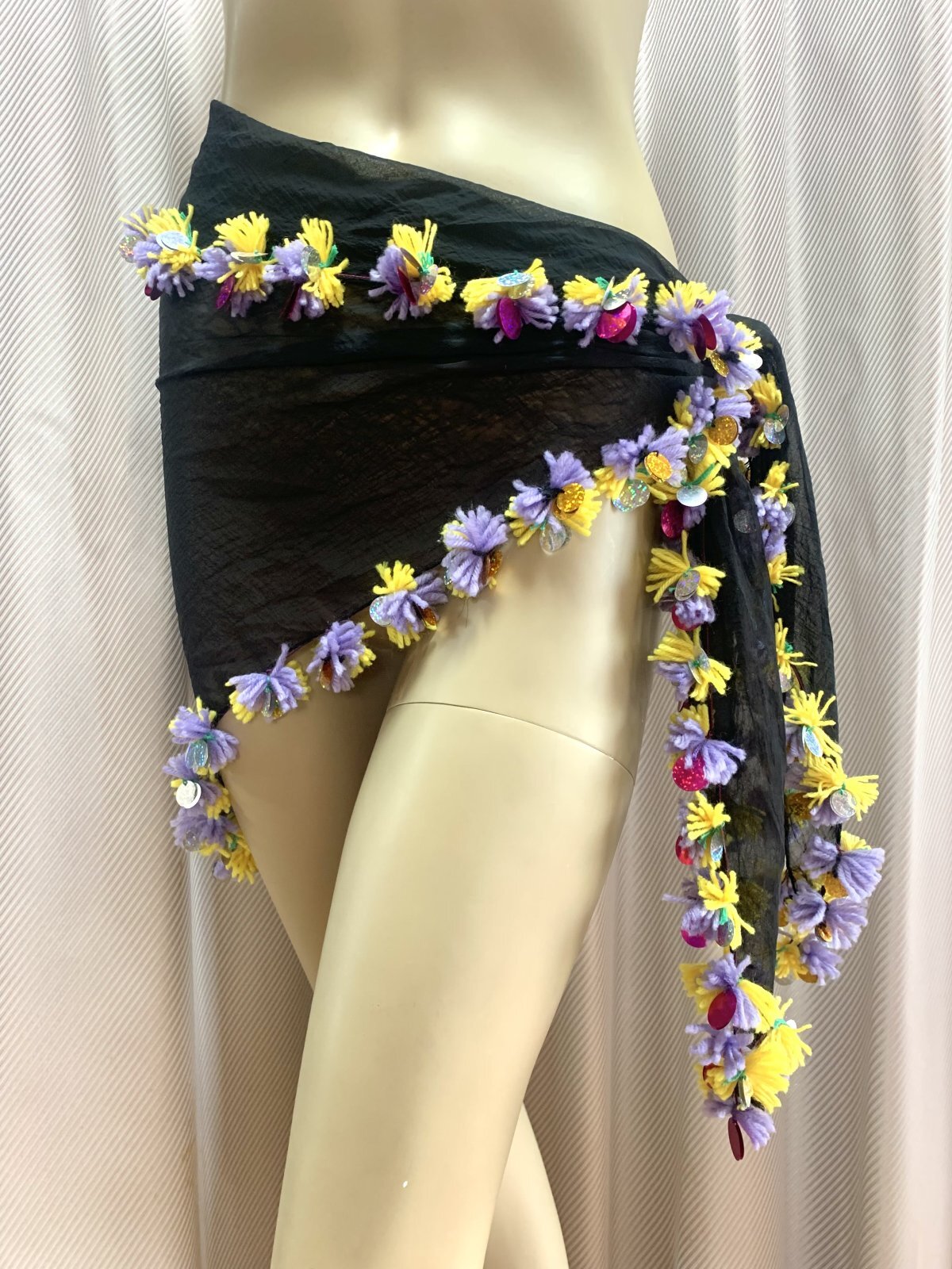 ファッラーヒ、イスカンダラーニ、ミラーヤバラディなどの衣装と合わせてお使いいただけるポンポン付きスカーフ。レッスン着とあわせてヒップスカーフとしてお使いいただいてもとってもキュートなコーディネートに! ポンポンが小さめですので頭に巻いた時のバランスがいい感じにまとまります! ■商品名:ポンポンヒップ&ヘッドスカーフ■その他・ポンポン付きですので結ぶ際はポンポンが引っかからないようお気を付けください。