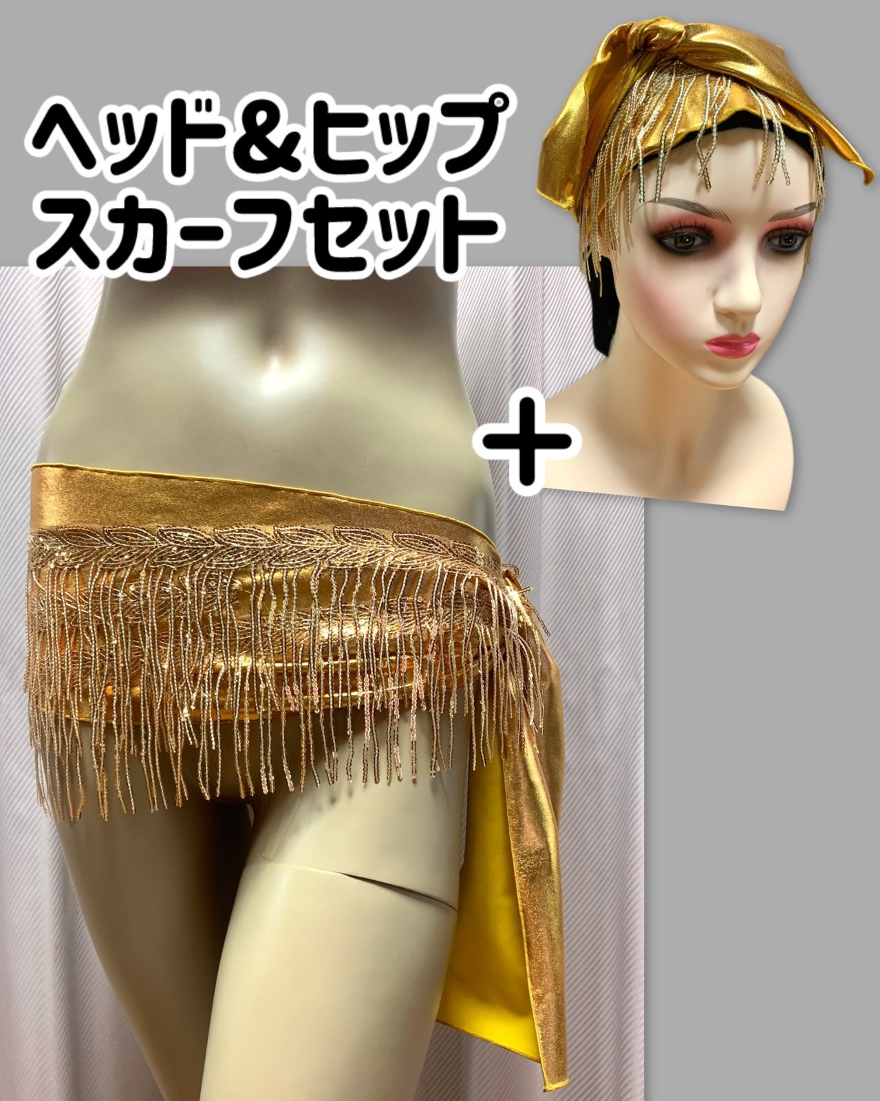 フリンジ付きゴールドヘッド&ヒップスカーフセット