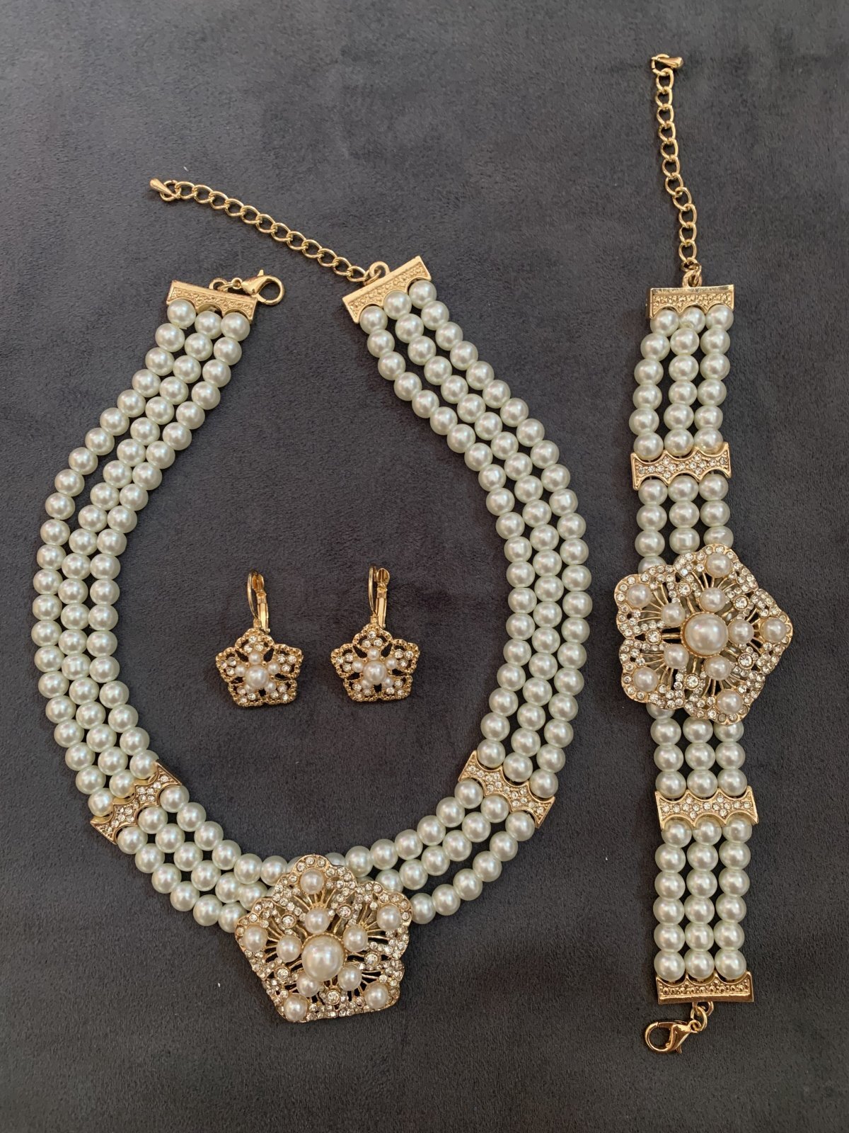 パールアクセサリーセット(フラワー) ネックレス&ピアス&ブレスセット [ON-053-G]