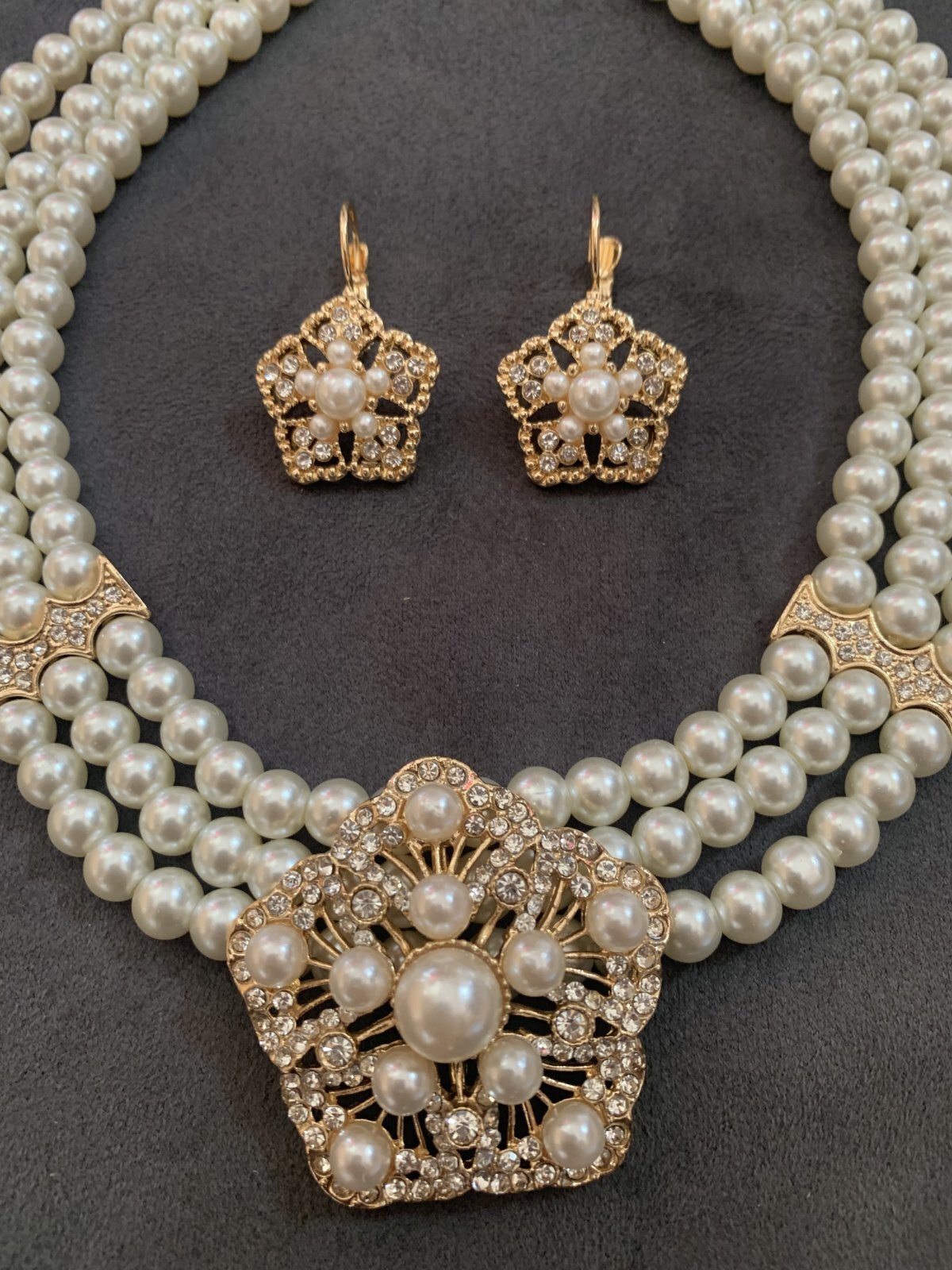 パールアクセサリーセット(フラワー) ネックレス&ピアス&ブレスセット