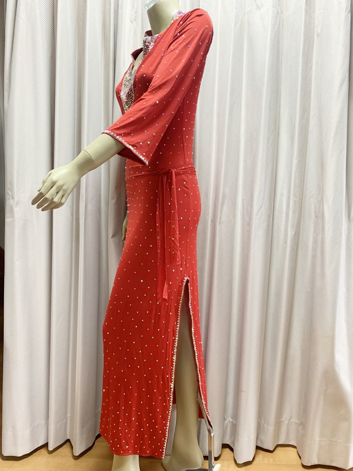 スタンドカラー・クリスタル付きバラディドレス(長袖) [BS-016-R]