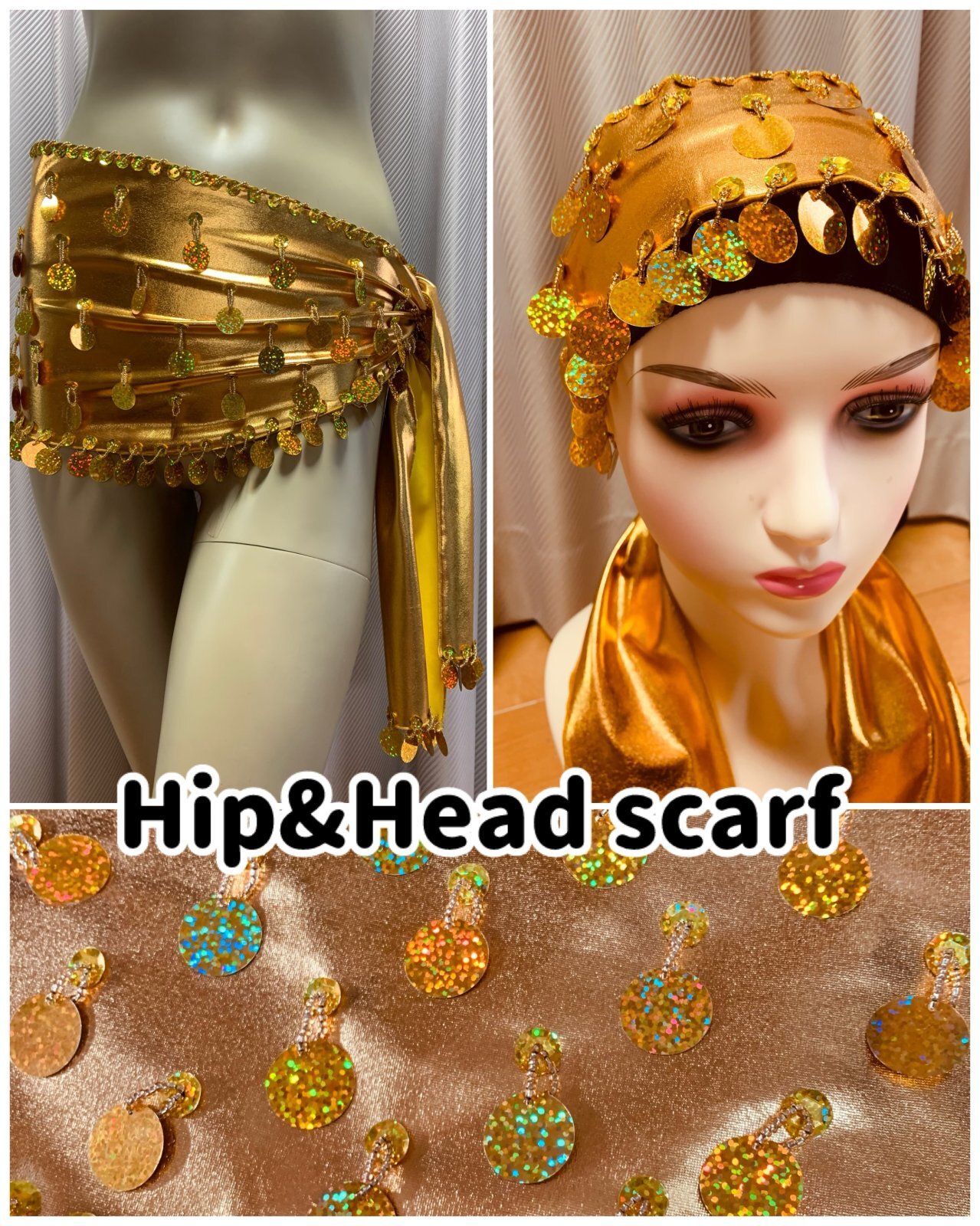 コインスパンコール付きヘッド&ヒップスカーフ2点セット [OES-019]