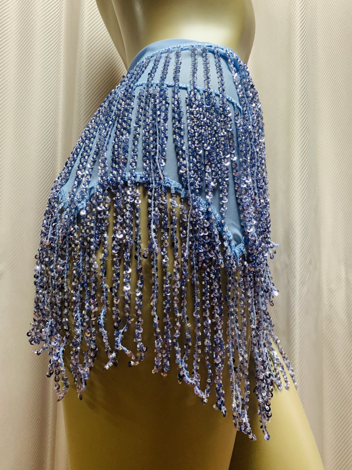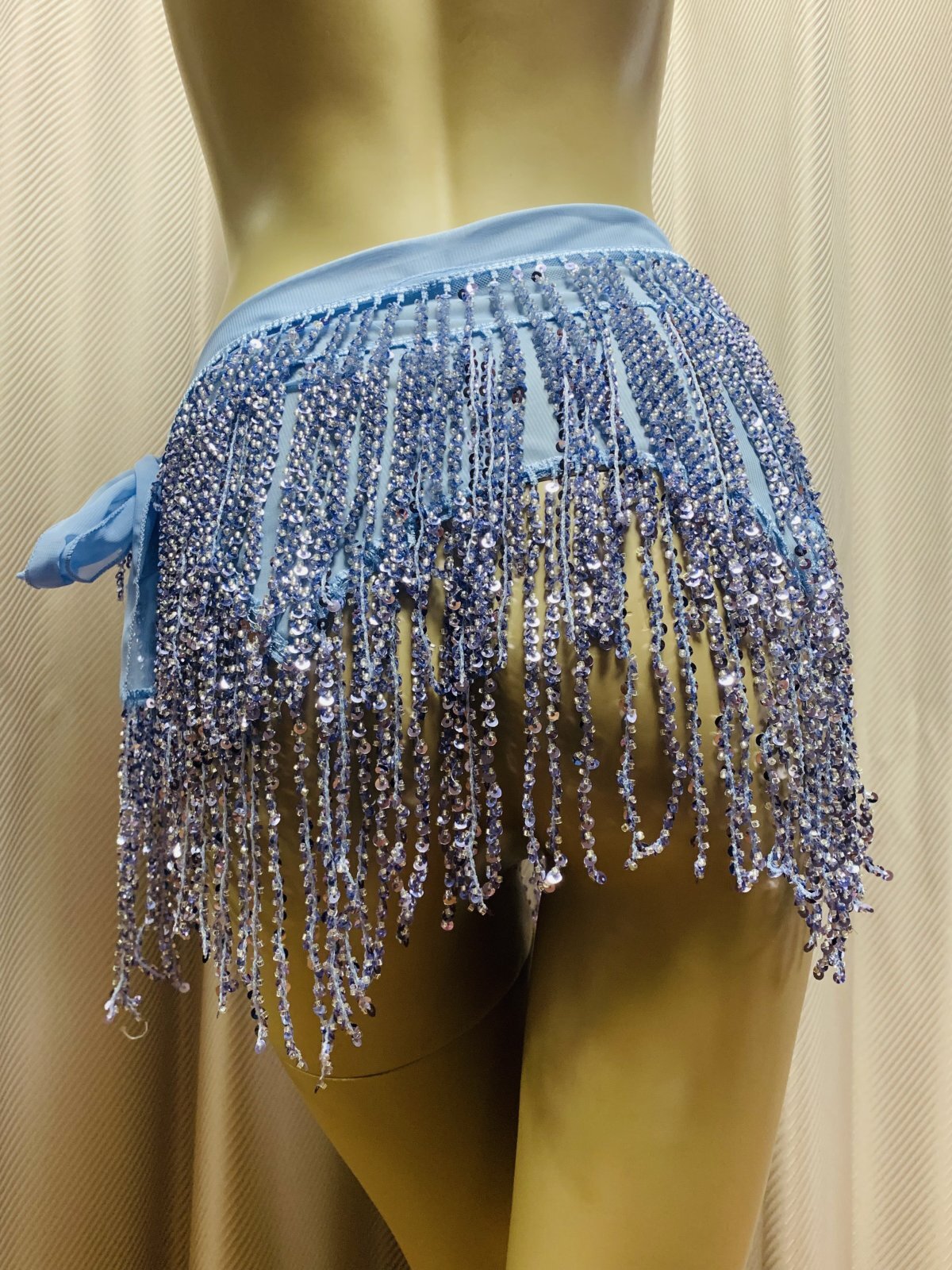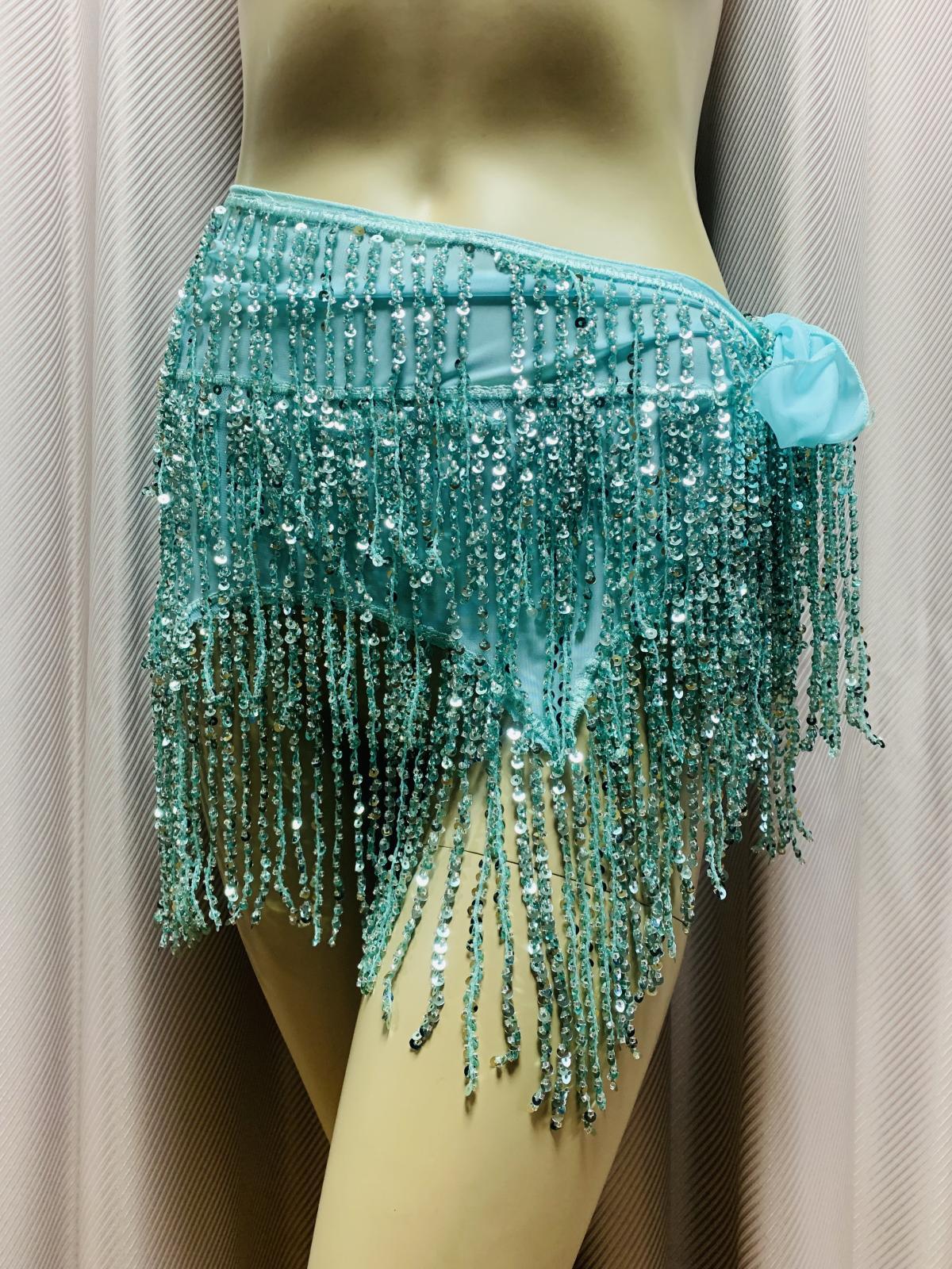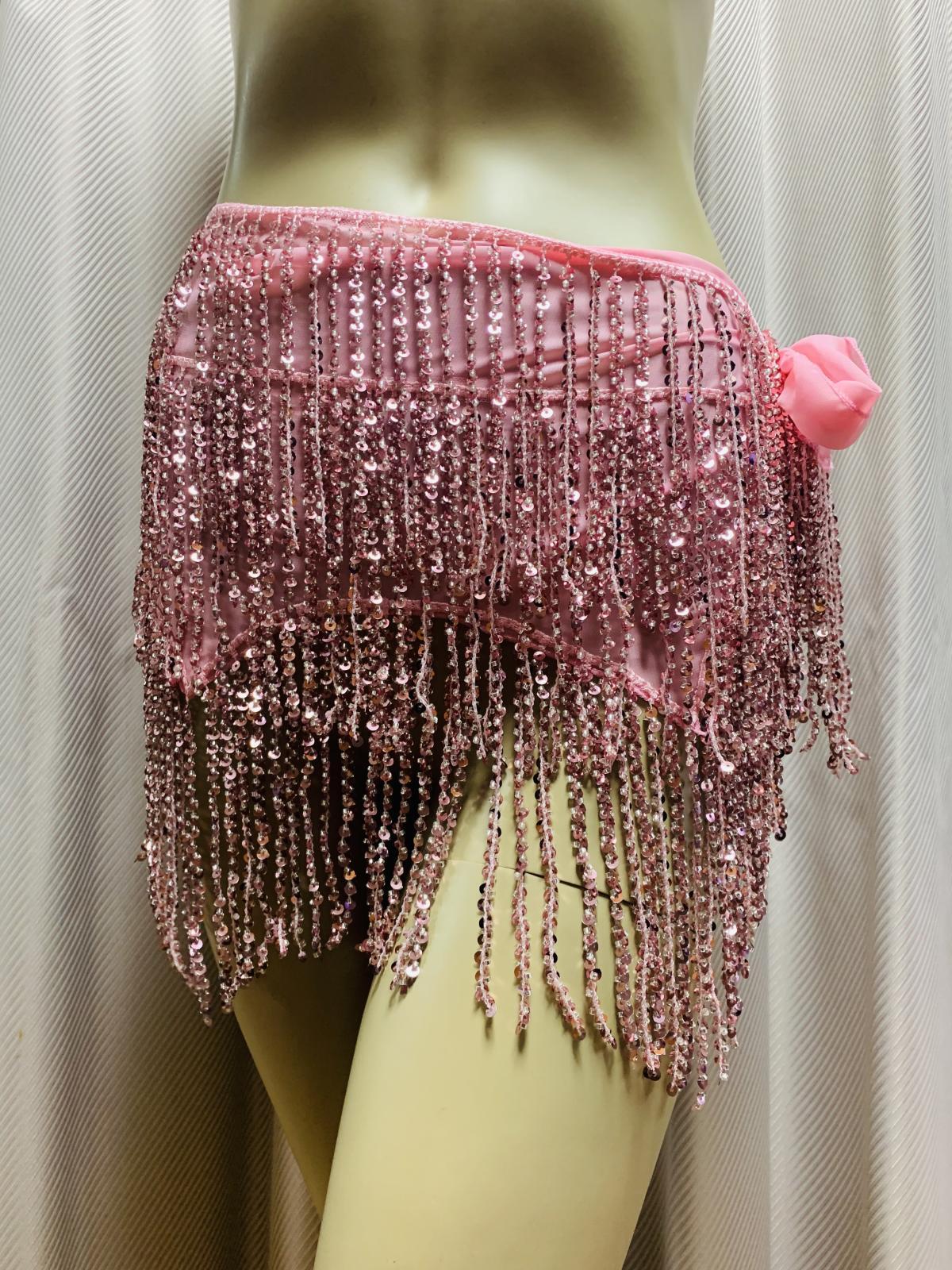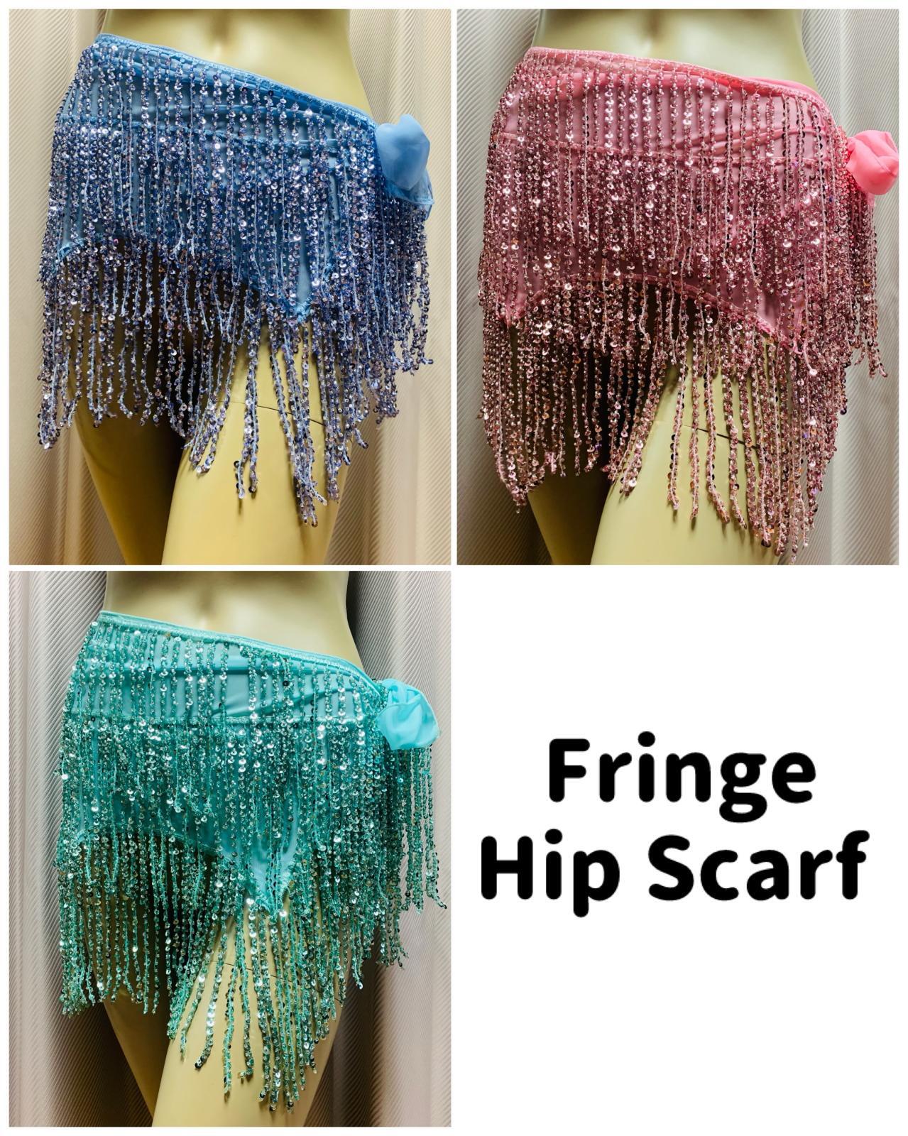 ビーズ付きスパンコールフリンジヒップスカーフ(ニュアンスカラー) [OES-21]
