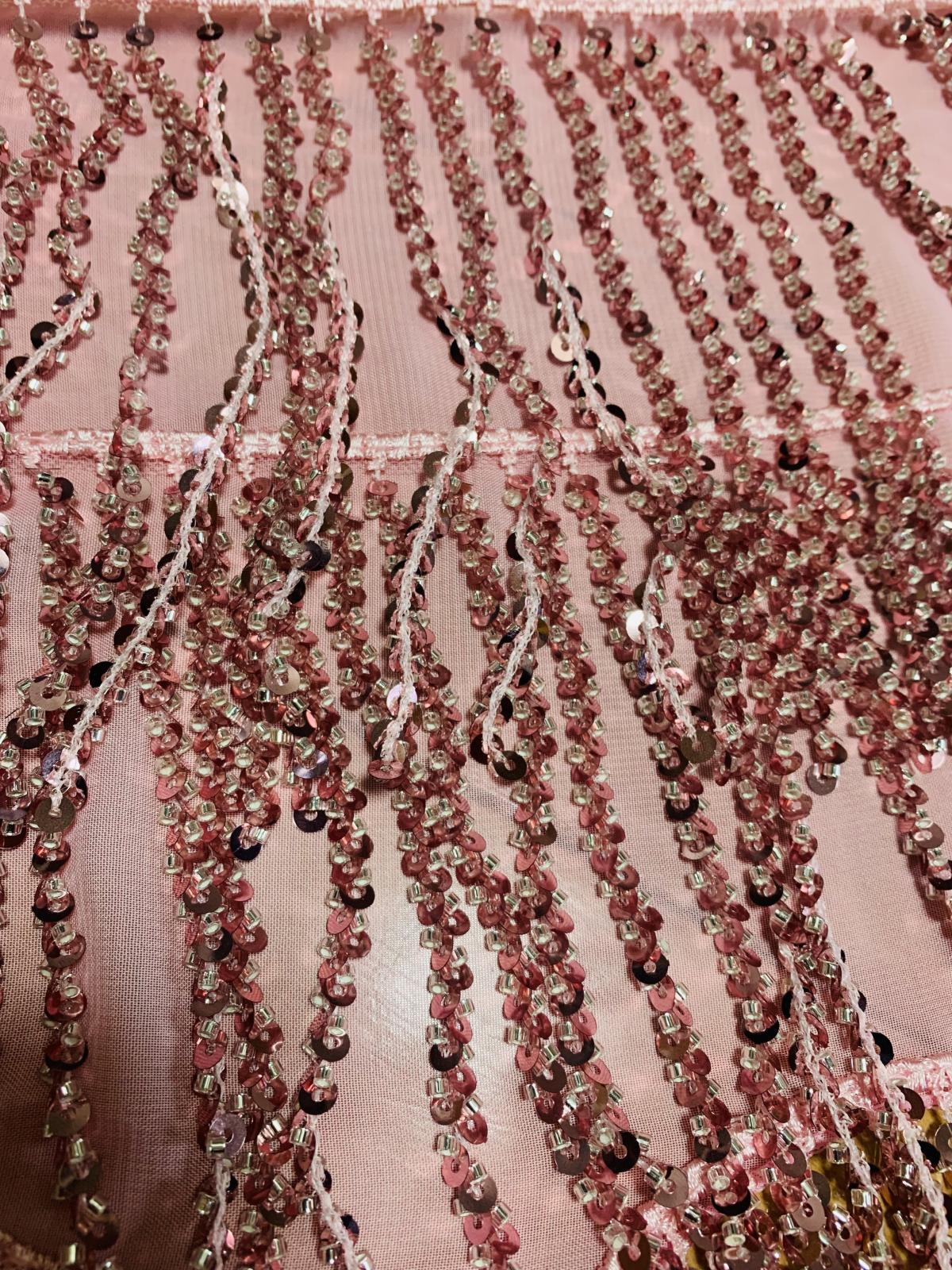 - > ビーズ付きスパンコールフリンジヒップスカーフ(ニュアンスカラー)
