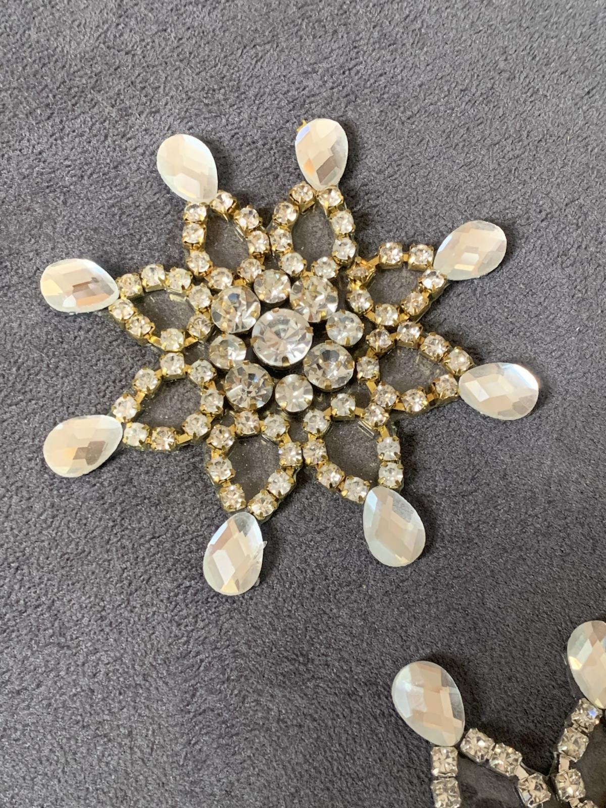 ゴールデンエラ時代のTahia KariokaやNaima Akefなど、スターたちは品良くおへそを隠すためビーズのドレープやアクセサリー、装飾などでおへそを隠すスタイル衣装を着ていました。こちらはキラキラとした衣装にも合わせやすいラインストーン付きのワッペンになります。 ■商品名:おへそ隠し用ワッペン■カラー:ゴールドorシルバー■サイズ横幅:約6cm■その他・ワッペン裏は透明の粘着シートが土台になっております。・ボディネットに貼り付ける場合はラインストーン用の接着剤などをご利用になるか、直接縫い付けることをおすすめします。・直接素肌に接着される場合は、汗に強い医療用両面テープをご使用いただくのがおすすめです。