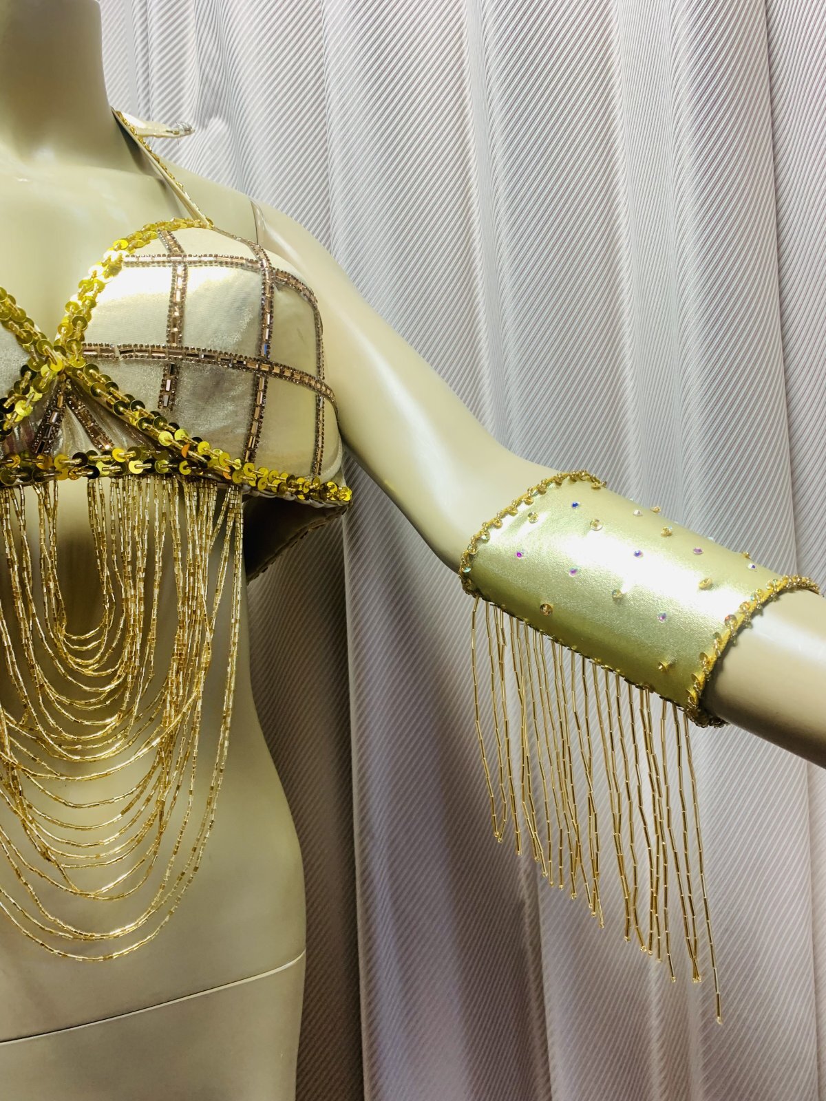 ビーズフリンジ付きアームバンド(両腕手首用) [BN-015-AG]