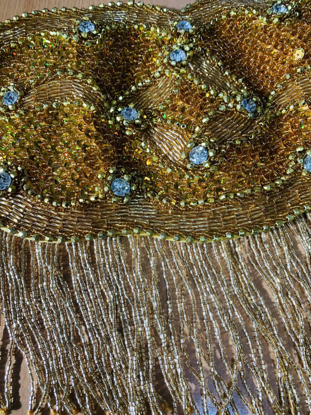 ゴールデンエラの時代を感じさせるビーズフリンジ付きのブラ&ベルト衣装。ブラベルトの便利なところは着回しができるということ!お好きなスカートと合わせてコーディネートしても良し!胸元の開いたサイーディドレスなどと合わせても良し!他にもサイーディのドレスのヒップにアクセントとしてベルトを使用するのもおすすめです昔はブラベルト衣装というと初心者向けのイメージがありましたが、オールドスタイルがお好きなプロの方にも人気があり、クラシカルな演出をしてくれるフリンジ衣装は昔と変わらず愛されている衣装です ■商品名:フリンジ付きブラベルトコスチューム■カラー:ゴールド■ブラカップ:M(約C〜Eカップ)※パットなし■アンダーバスト:最長88cm■バスト正面(右脇から左脇までの長さ):35cm■ベルト:約95cm■付属品:手首2つ、アーム2つ■その他・スカートは別売りとなります