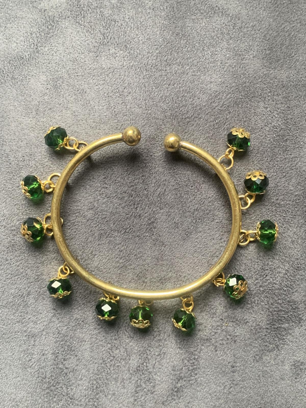 エジプシャンフォークロア用の足元のおしゃれに!エジプトではホルハールと呼ばれるアンクレットですアンティーク風の燻ゴールドにキラキラ輝くクリスタルビーズの組み合わせですので、サイーディやガワージーなどのフォークロアのワンポイントとしてプラスしていただけます。もちろん、オリエンタル衣装との相性も◎!!さりげなく足元に差し色として取り入れるとおしゃれ度アップです。 ■ホルハール・アンティーク風アンクレット■サイズ・フリーサイズ(大きさは調整できます)■カラー:ゴールド×グリーン■その他・金属アレルギーの方はご注意ください