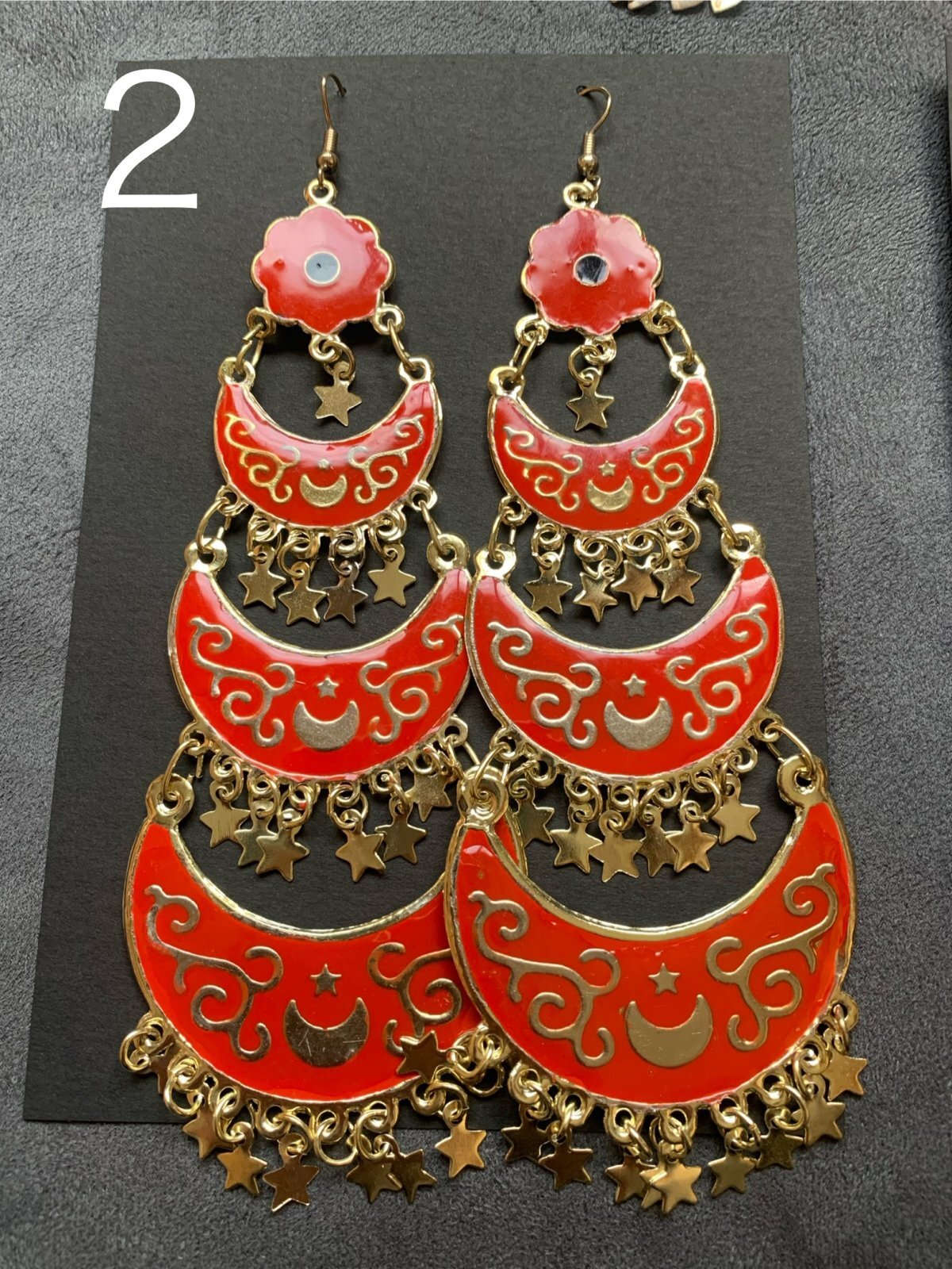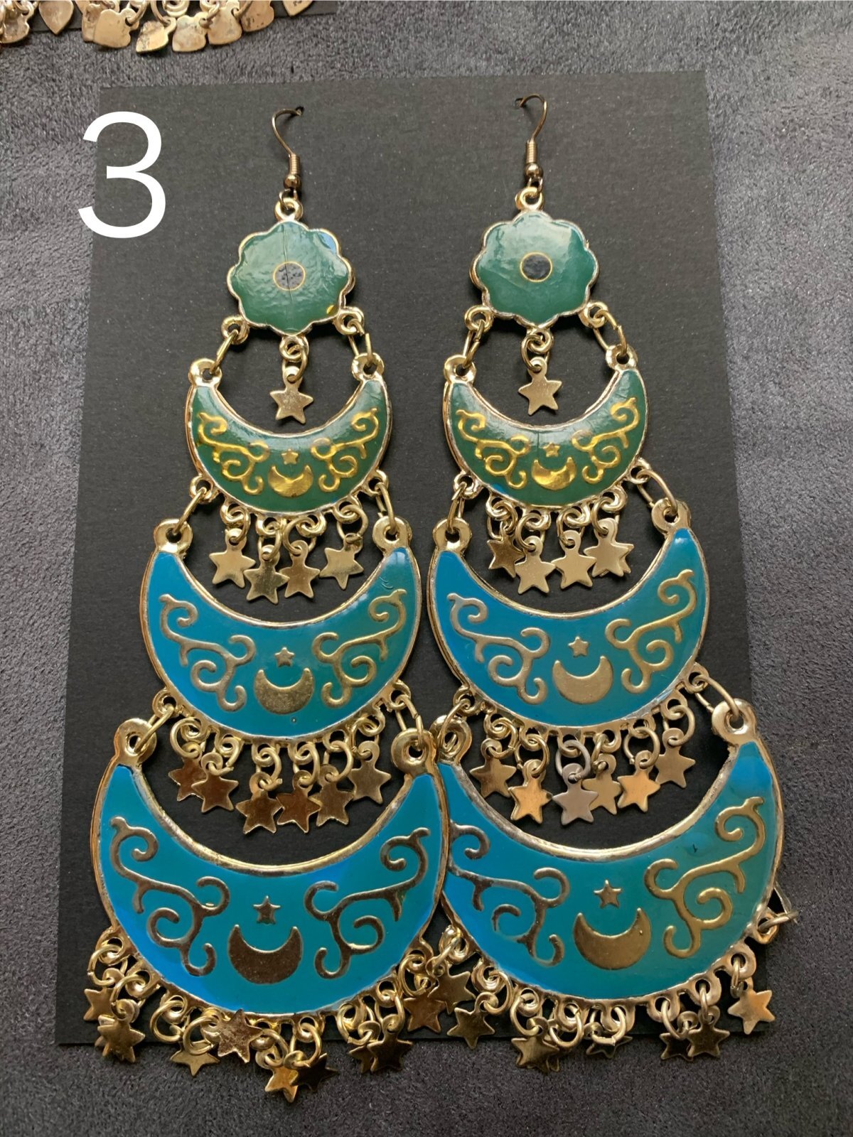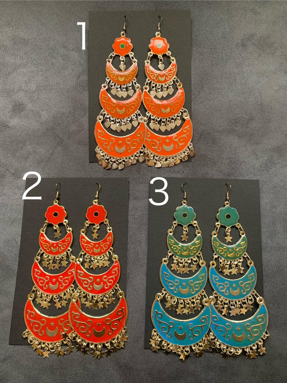 カラフルなアンティークパーツを使用した三日月ピアス。色褪せやカラーの剥がれ落ちなどはこちらのデザインの特徴ですのでご理解のほどよろしくお願いいたします!ほとんど市場に出回っていない商品のため再入荷は難しいかもしれませんので気になっている方はお見逃しなく!! ■三日月フォークロアピアス■サイズ・長さ:約15cm(吊り下げたときの長さ)・横幅:5cm■その他・金属アレルギーの方はご注意ください