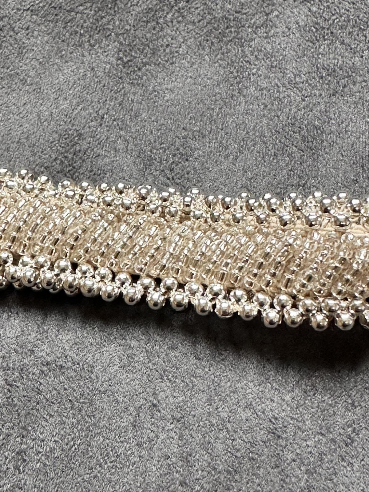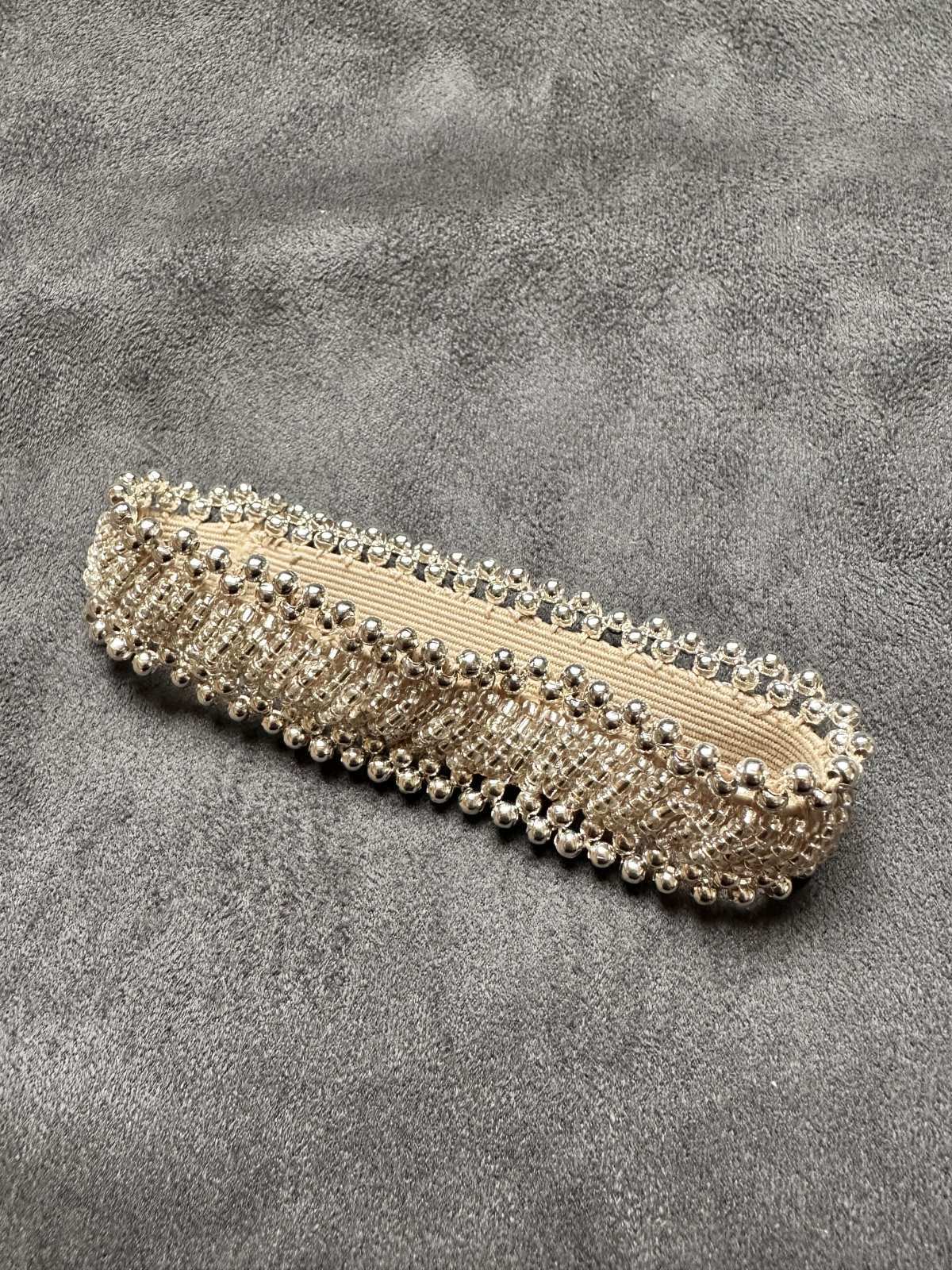 金属アレルギーの方でも安心!!ゴムバンドで簡単に脱着できるブレスバンドをお作りしました。強力ゴムに直接ビーズを縫い付けた100%ハンドメイドになります ■ブレスバンド■サイズ・18cm ※抗菌強力ゴムバンドで伸縮あり■カラー:シルバー■その他・金属アレルギーの方でも安心してお使いいただけます・一点一点ハンドメイドでお作りしてます