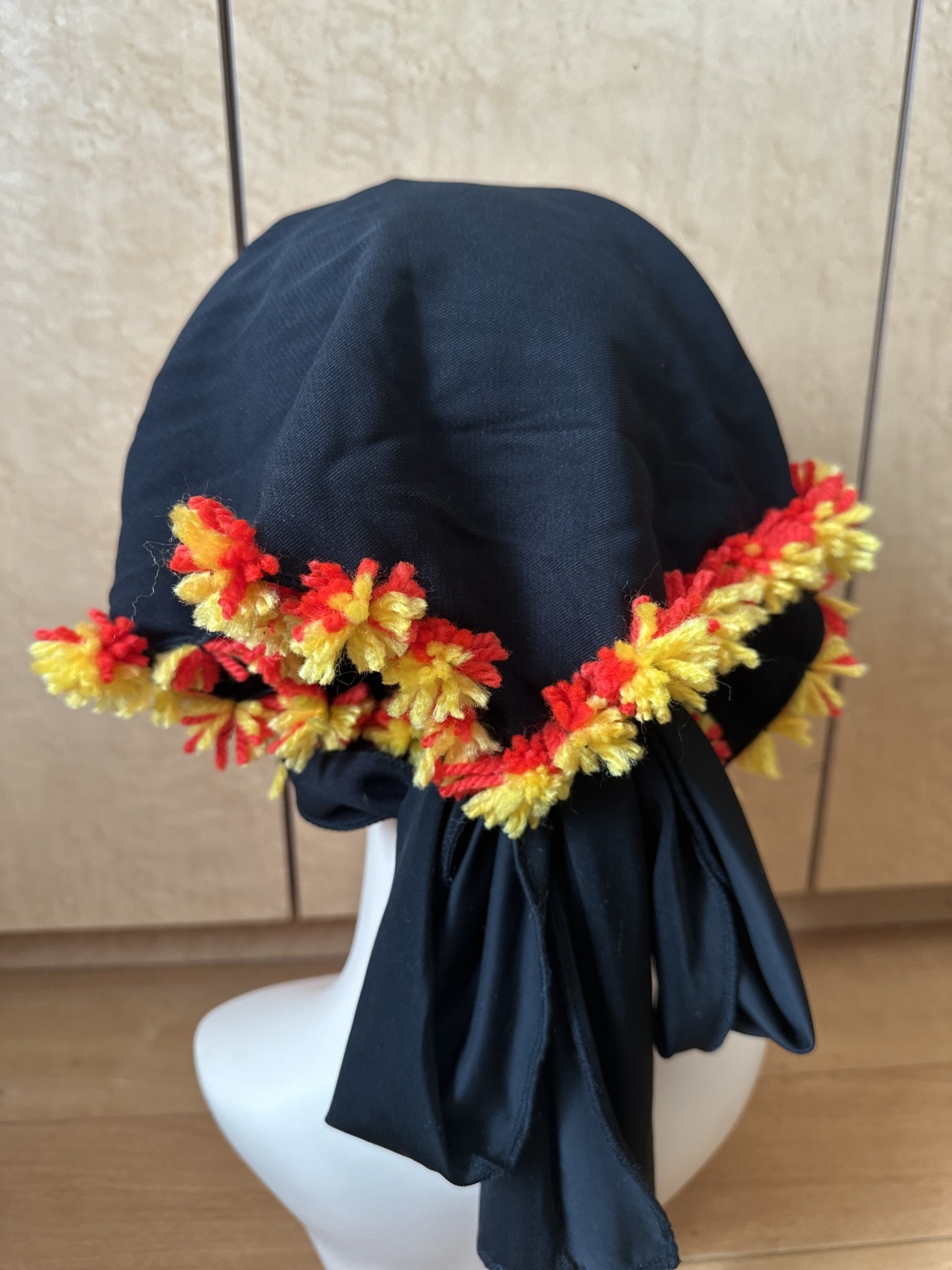 リアルなバラディスタイルに近づけるならポンポン付きスカーフを頭に巻こう!こちらは頭に巻くよ用ですので三角巾のようなサイズイメージです。材料の在庫によっては受注でお作りすることも可能ですのでお問い合わせくださいませ ■ポンポン付き三角スカーフ■サイズフリーサイズ■カラー・ターコイズ×イエロー・レッド×イエロー■その他 ・材料の在庫状況によっては受注オーダーも可。