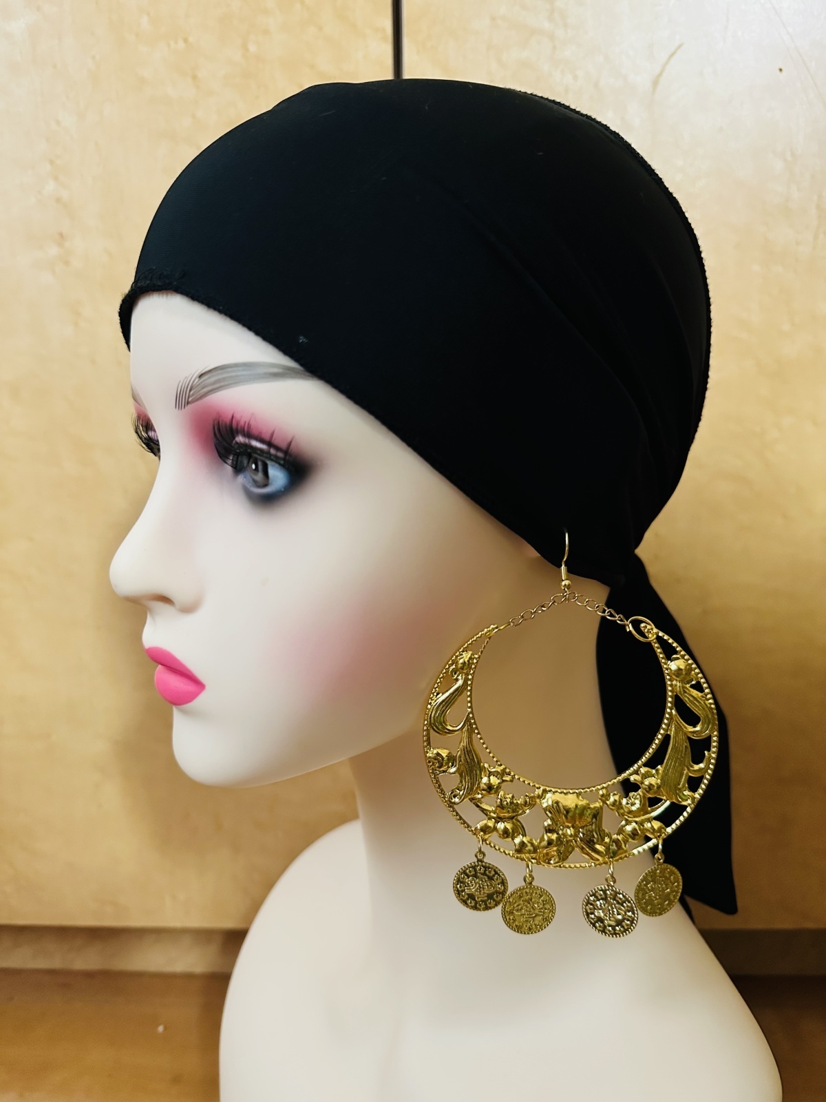 三日月モチーフのコイン付きピアス。こちらは存在感ある大きめのサイズになります!オールドスタイルの衣装やサイーディなどにもぴったりなデザインです ■三日月モチーフコインピアス■サイズ・長さ:約10cm(吊り下げたときの長さ)・横幅:8cm■カラー:ゴールド■その他・金属アレルギーの方はご注意ください