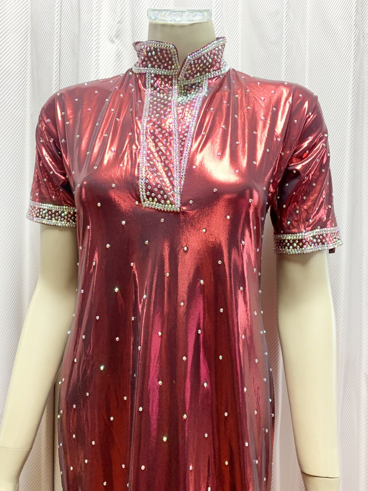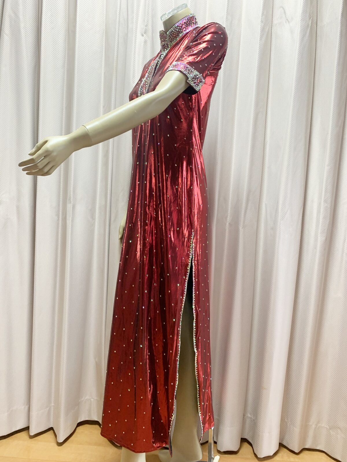 スタンドカラー・クリスタル付きバラディドレス[BS-015-R]