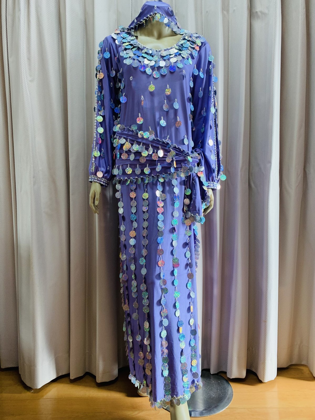 コインスパンコールをふんだんにあしらったガラベーヤ