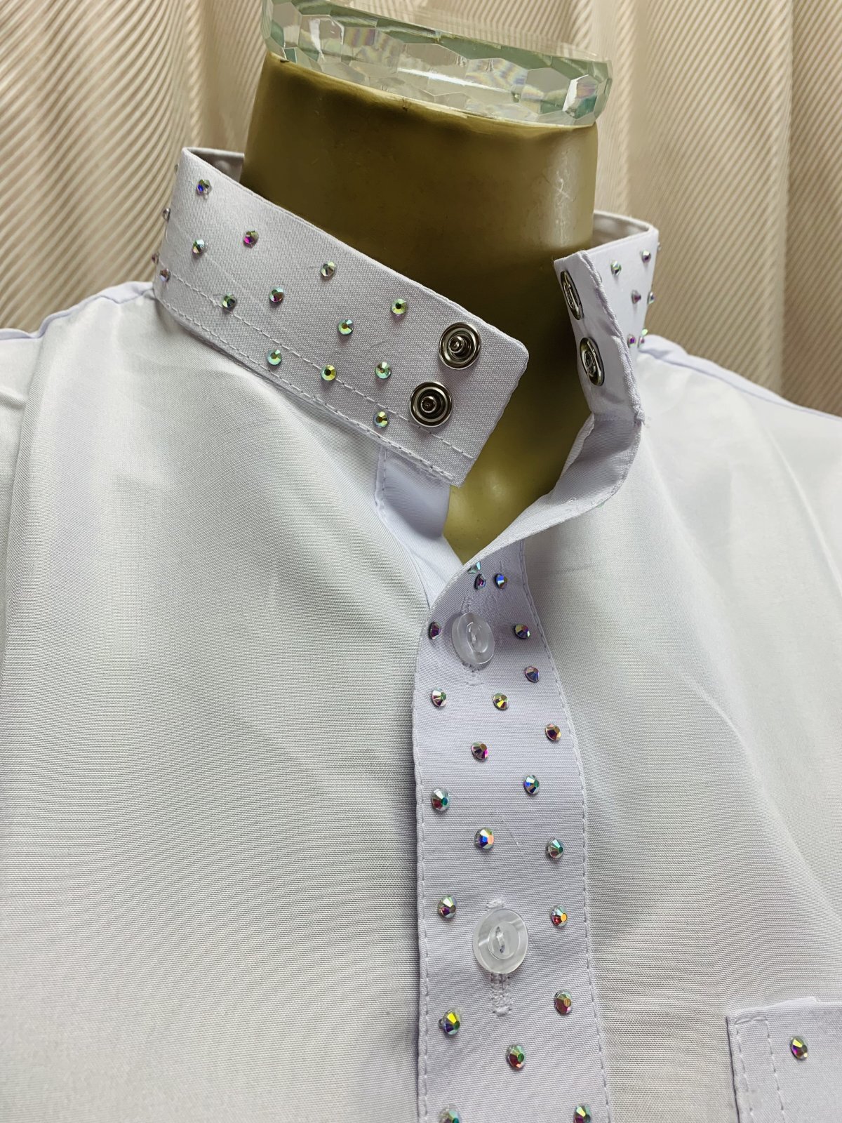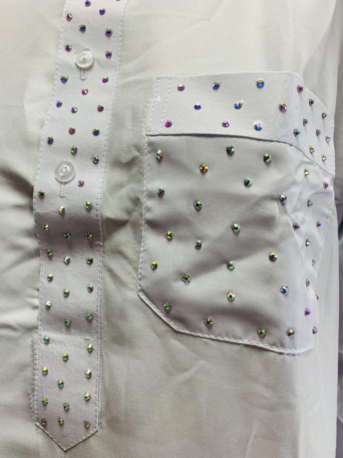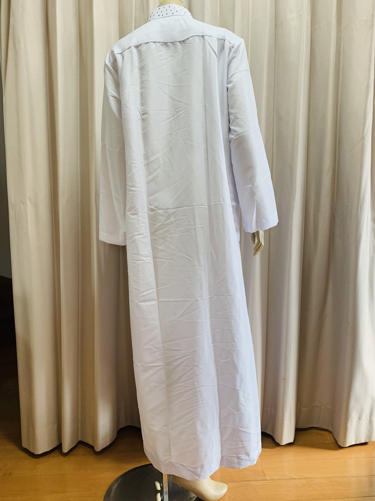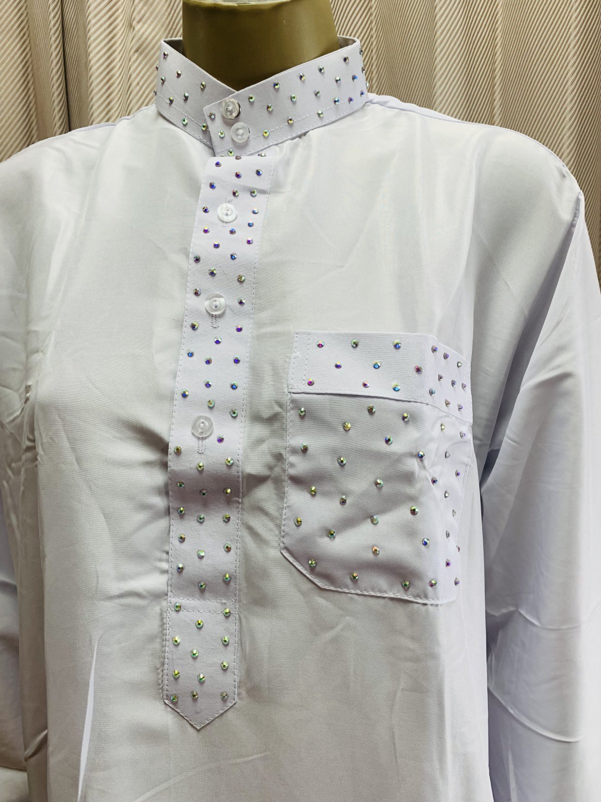白バラディ、スタンドカラーガラベーヤ(ラインストーン付き)[BS-017]
