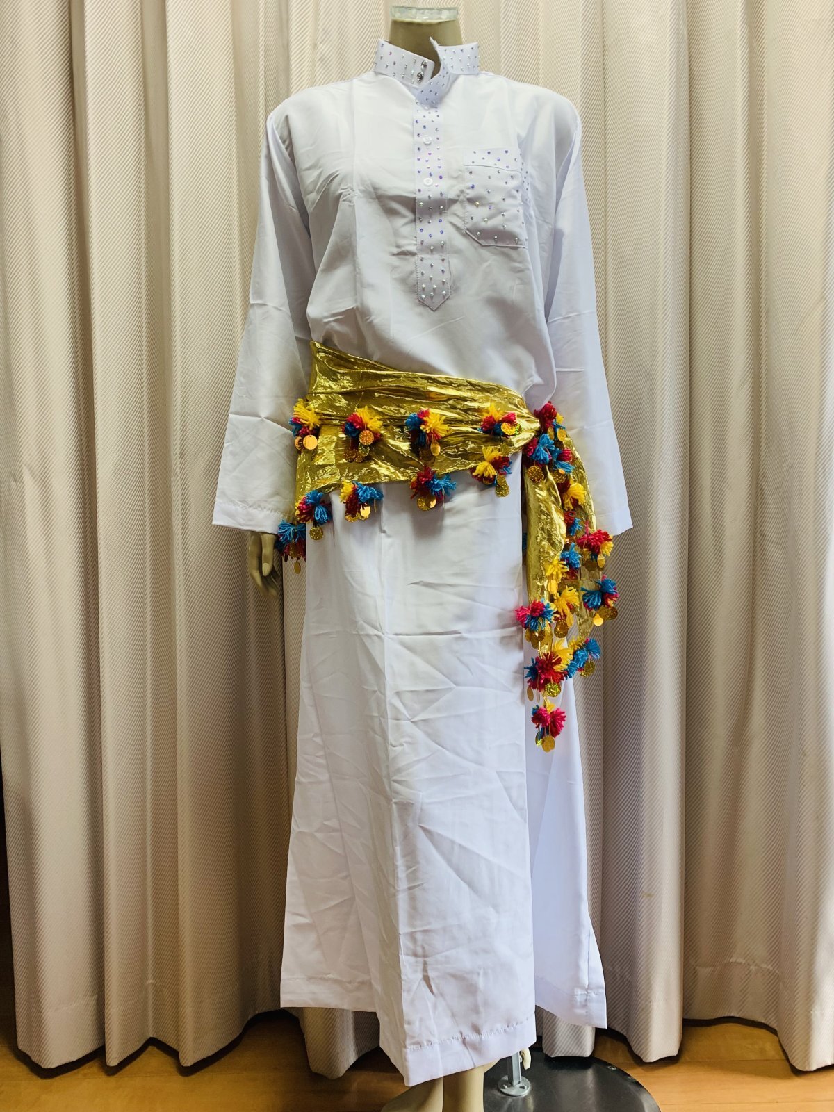 ホーム | フォークロア衣装・ガラベーヤ > バラディドレス白バラディ、スタンドカラーガラベーヤ(ラインストーン付き)