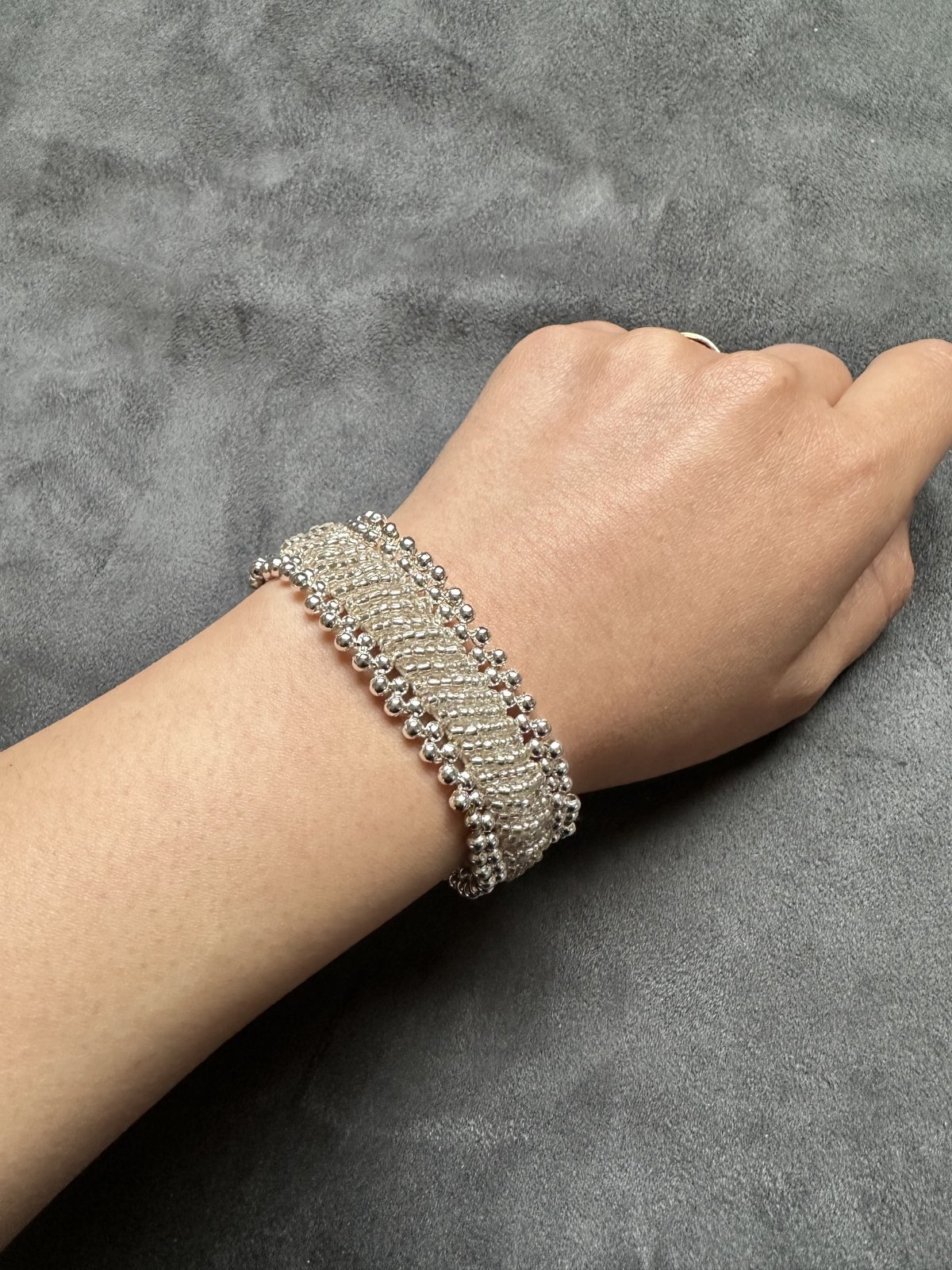 強力ゴムに直接ビーズを縫い付けた100%ハンドメイドになります